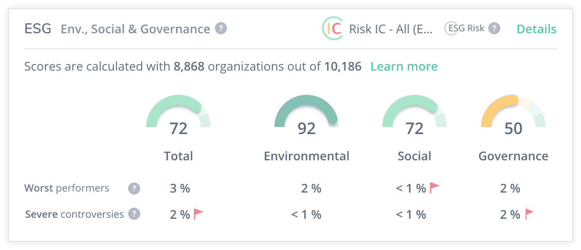 - Portfolio maintenance: Monitor your sustainability risks at the company-level and understand the incidents driving each controversy