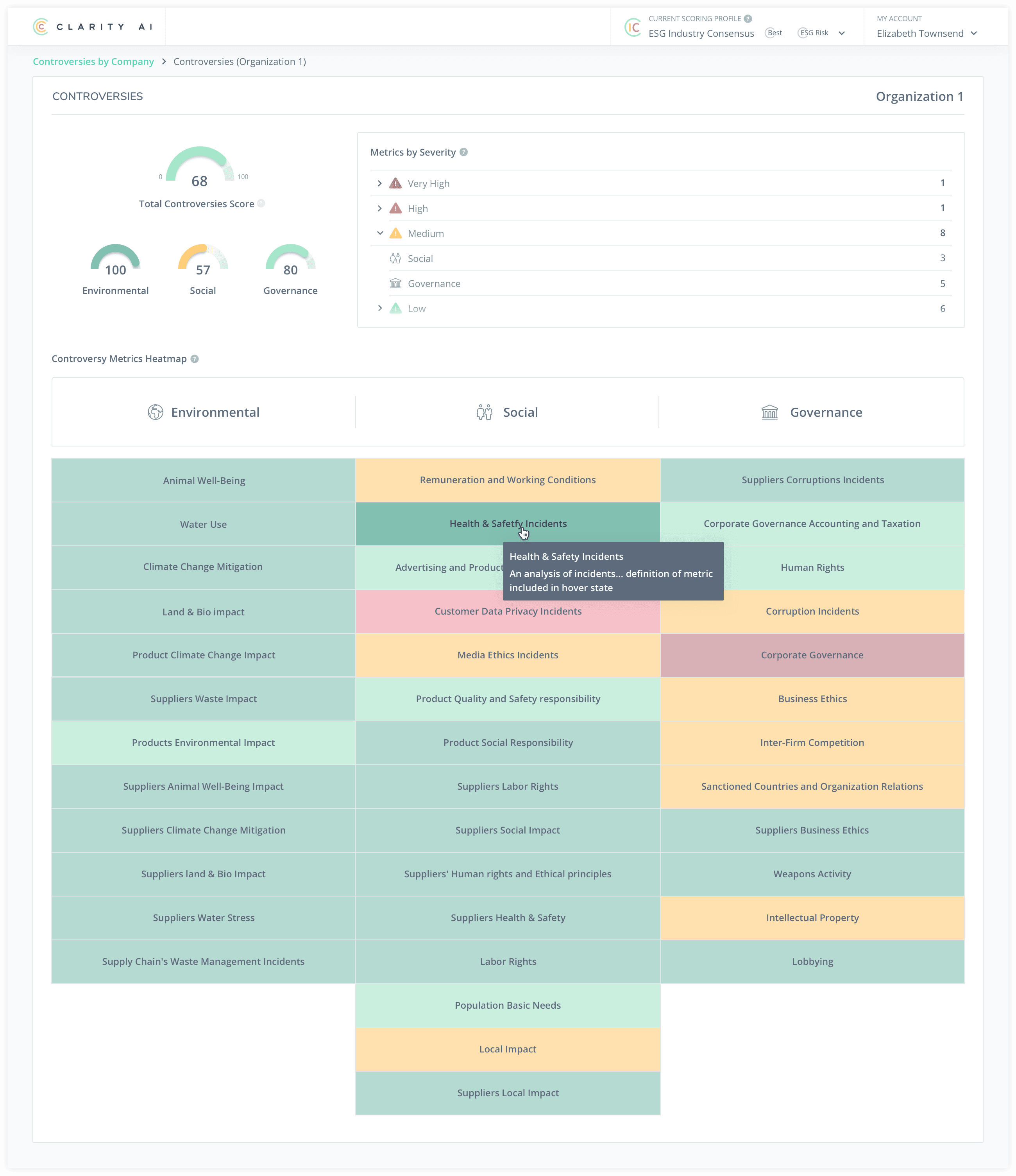 - Portfolio maintenance: Monitor your sustainability risks at the company-level and understand the incidents driving each controversy